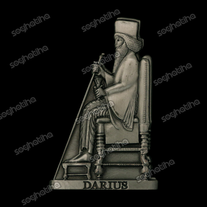 مستطیلی بزرگ، داریوش نشسته بر تخت