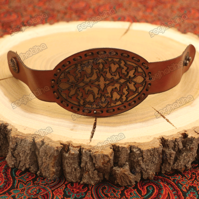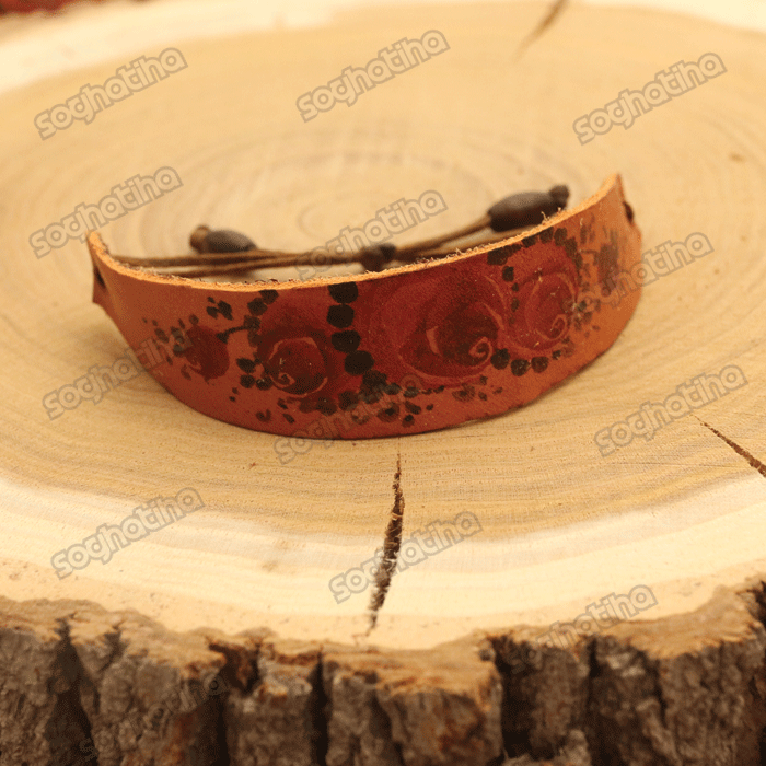 دستبند چرمی با نقاشی طرح اسلیمی 1